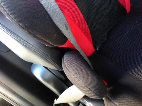 でこのジュニアシートを助手席に移動し、車の中からつけるようにしました!