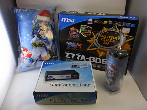 そして2012年12月にクリスマスキャンペーンと称してMSIマザーに美星藍グッズがつくというステキキャンペーンが発動、そして対応モデルにはこのMulitiConnectPanelがセットでついてくる。マザー・美星藍・ベイアクセサリという3点セットには抗えず、必須ではないのにマザーを買ってしまった。