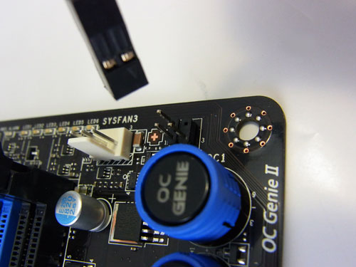 このベイサクセサリが「指定マザー専用」と銘打たれているのはこのOC GenieIIボタンをフロントに引き出す為のピンヘッダを備えているかどうかという点のみ。OC GenieII自体はいわゆる自動オーバークロックorオーバクロックプロファイルへの切り替え機能で、Z77A-GD55の方に細かい内容を掲載してある。