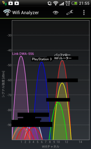 シグナル強度も測定してみました。(必要なさそうなSSIDは消してあります)