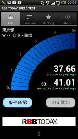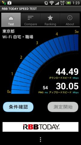 瞬間だとダウンロードスピードは50Mbpsを超えていました。