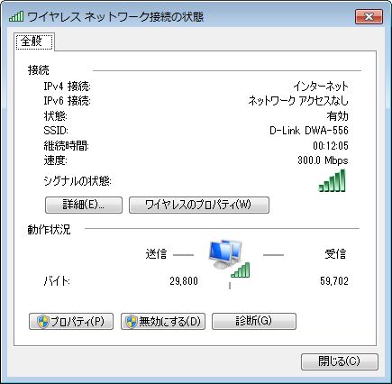 D-Link DWA-556で接続(300Mbps接続)した場合