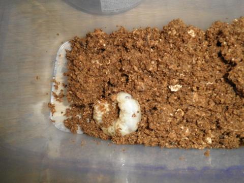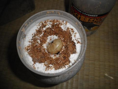 古いボトルから幼虫を取りだし、移動しますが、幼虫は人間の手で触ると死ぬと言われているので、ピンセットでそっと移動します