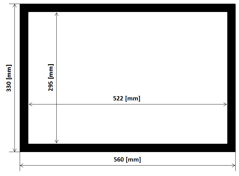 外形が330mm*560mmで、ベゼルの内側にあるパネル領域が295mm*522mmです。