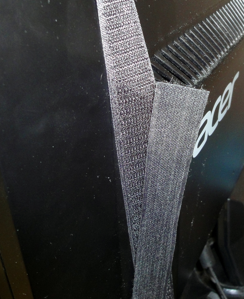 こんな風にマジックテープの通り道が出っ張っている構造の液晶ディスプレイですと、起こしたときに重力でずるっとずれるんですよね。