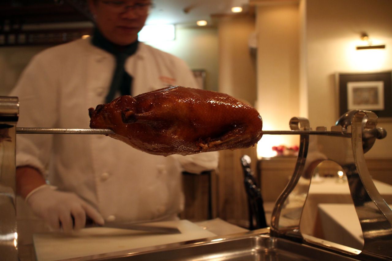 北京ダック用に飼育された鳥は、皮が厚くていいですね。