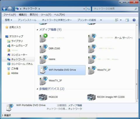 有線接続していますが「WiFi Portable DVD Drive」と表示されます。