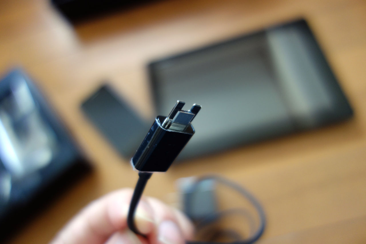 充電ポートの形状は、一見するとminiUSBに見えるのですが、独自の形をしています。