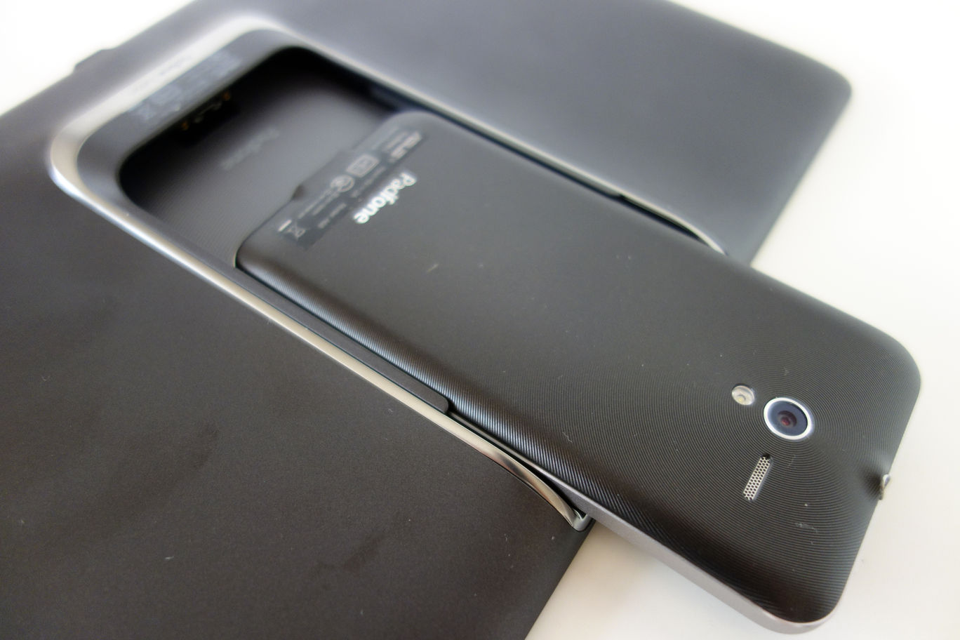 携帯端末にmicroSDHCカードスロットが無いので、「Padに付ければいいのに」と思うのですが、そのアイディアは後継製品Padfone Infinityでも実現されてない様子です。