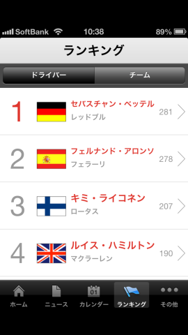 そして気になるドライバーランキングやコンストラクターランキングもチェックできます。