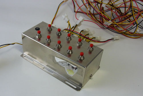 そう、コイツはケースファン等の店頭展示時に、1個づつ動作させて動作音等を客が確認できるようにするユニット。広い目で言えば「ファンコントローラ」といったところだろうか。