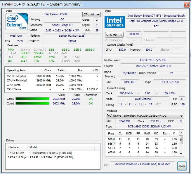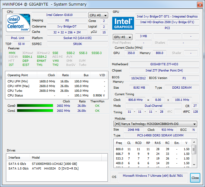 CPU以外はまるっきり同じハードウェア環境を使用していますので、SSで勘弁して下さい。