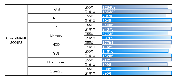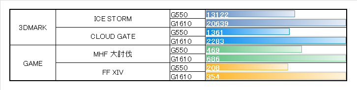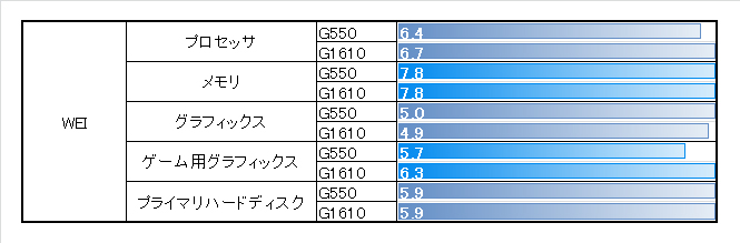 グラフィックスの項目だけG1610が若干スコアを落としているのが気になりますね。