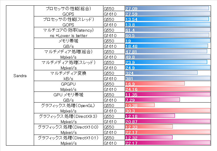 Sandraの方がより素のデータに近いと思うのですが、ケースバイケースでメモリ性能が上がるところがあるんでしょうかね。