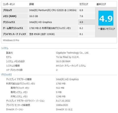 Windows8でWEI計測を計測してみました。