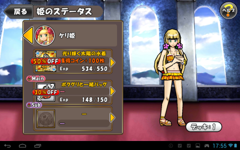 ちび兵士のレベルだけでなく、姫の衣装チェンジで能力はかわる。