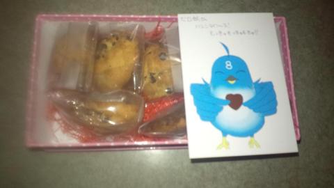 内容物は、綺麗な箱に納まった、チョコチップクッキーと自作カードでした。