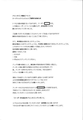 もう一つ同梱されていましたが、ミッションの招待状の中に「クッキー以外のものが入っていた場合は、