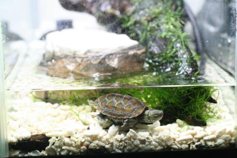 連結水槽の1つの水深を浅くして、ゼニカメ。