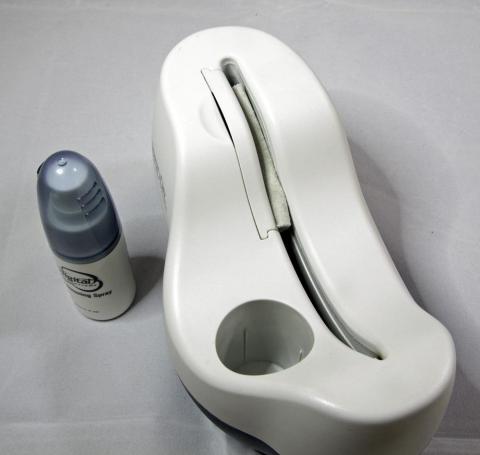 前面に専用のクリーニングスプレーがセットされています。