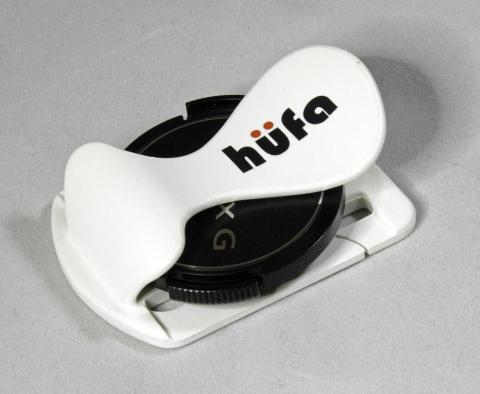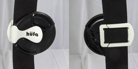 レンズキャップをクリップ式で挟んで留めるので、レンズキャップのサイズにとらわれる事がありません。