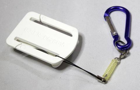 ということで、そこいら辺にあったストラップとカラビナを付けてみました。