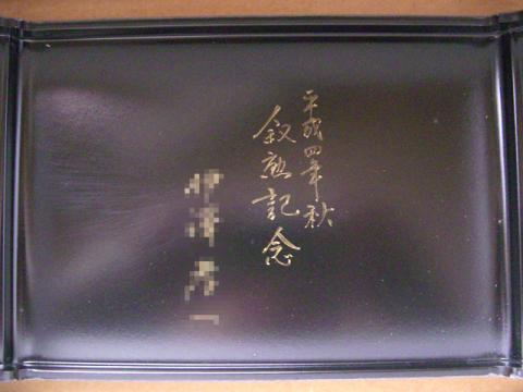 下に敷く台座も付属しており、裏面には受章年と氏名が手書きで