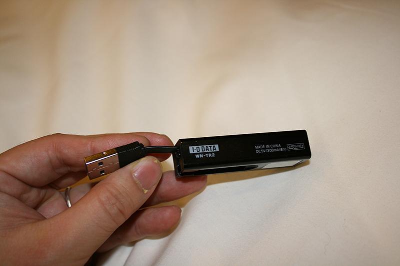 図9. 本体とLANケーブルとACアダプターUSB変換器を取り付けた様子