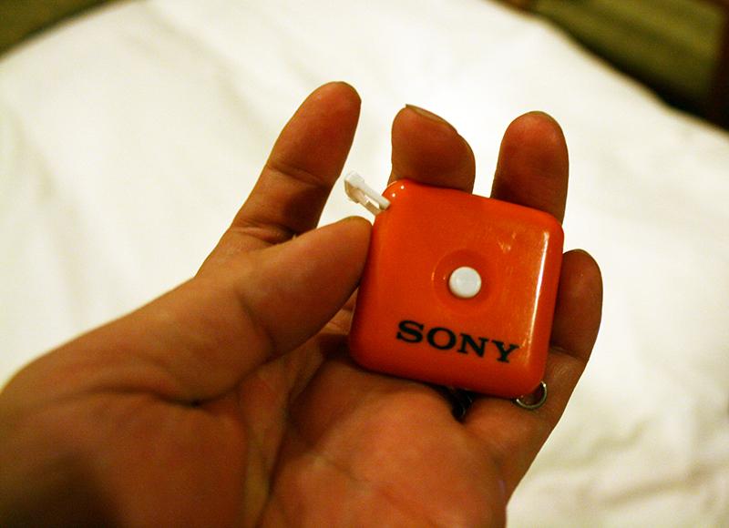 図5. 無線通信試験で距離による電波伝搬減衰は重要なのでメジャーを用意。なぜSONYと書いてあるのかは、僕にも今となっては分かりませんwww。