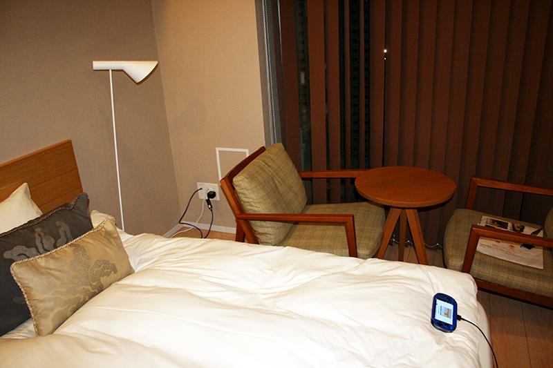 図2. 一晩借り切った実験所(洋風部屋)の様子。奥にインターネット回線RJ-45端子と電源コンセントがあります。時計をみると哀愁が漂います。夜中ですorz。