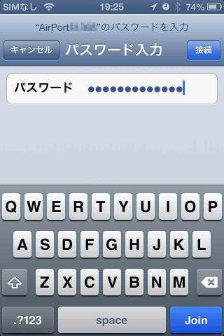 まずはAirPortXXXXXを接続するとパスワードの入力を要求されるので、先ほどpomeraQRでコピーしておいたパスワードをペーストするとあっという間に設定完了です。
