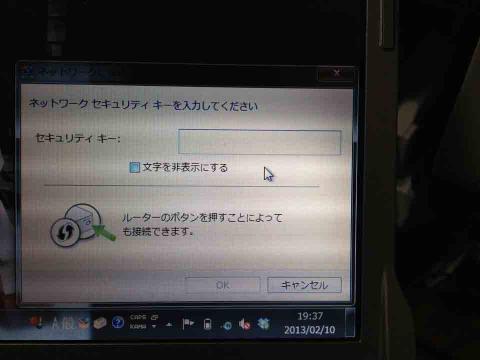 次はWindows7での設定です。Panasonic CF-S10を使ってやってみました。こちらWN-TR2がWPAに対応しているので、WN-TR2のボタンを押すだけでiOSよりもずっと簡単に接続できます。