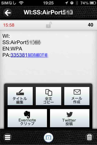 AndoroidにもQRコネクトという専用アプリありますが、iPhone同様にQRコードリーダーアプリで読み込んでパスワードをコピーして貼付けました。
