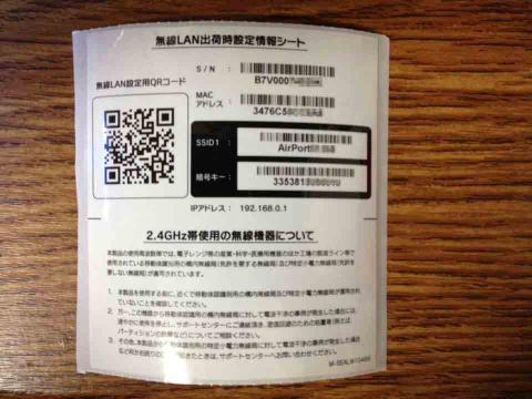 簡単にAirPortXXXXXに接続できました。設定シートにQRコードがあるだけで非常に便利です。これくらいの配慮がうれしいです。