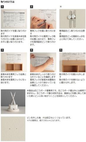 この棚は壁に穴をあけることは開けるのですが、特殊な形状の押しピンを使って壁に棚を設置します。