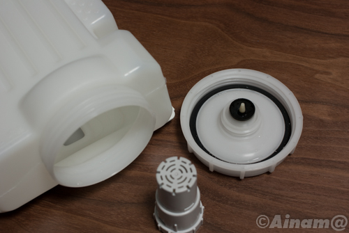 これで、タンクの中の水がAg+イオンで清潔になり、その水をトレーに流し込みます。
