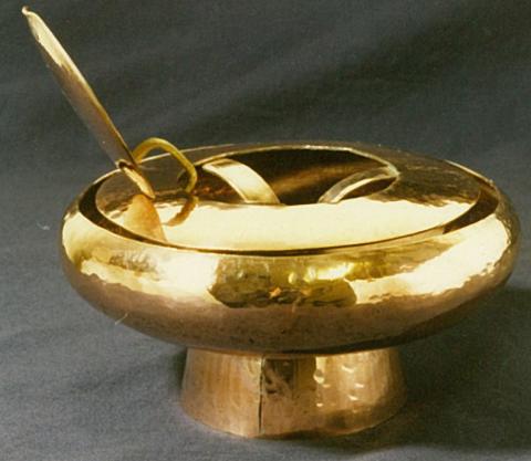 鍛金で形を作り、鎚目を消してピカピカに磨いたものに