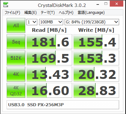 182MB/s 154MB/s (FastUSBの効果が出ています)