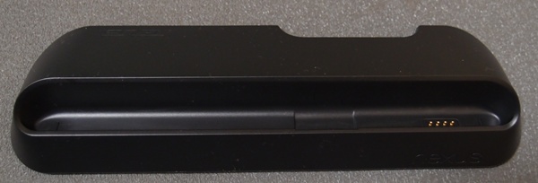 Nexus7のサイドの充電端子と接合する金属が見えます。