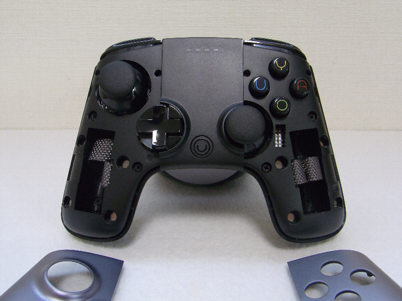 左右のグリップ部分のカバーが外れるようになっていて、ここに電池を入れる。