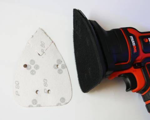 サンダー本体はマジックテープになっていて、サンドペーパーの裏側とくっつきます。