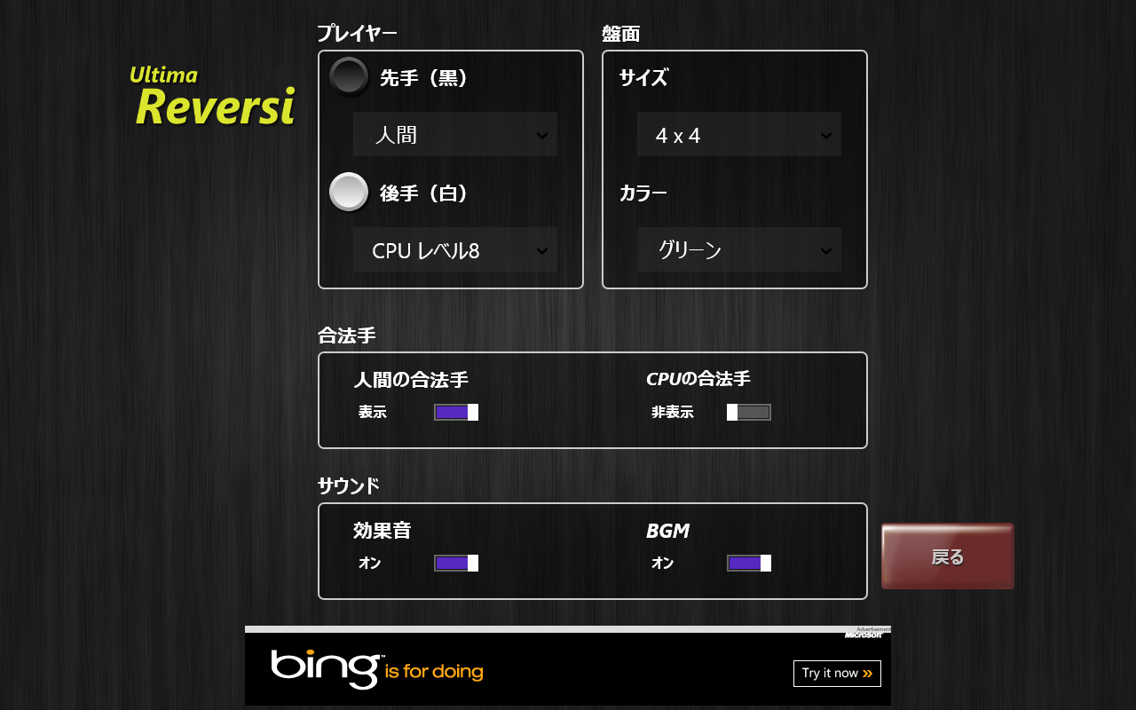 Windowsアプリにあるゲームの「Ultima Reversi」です。