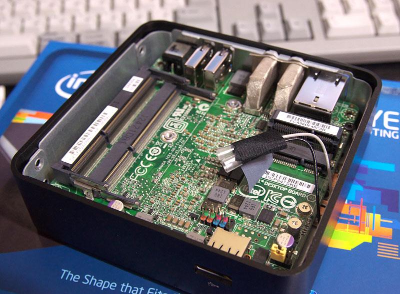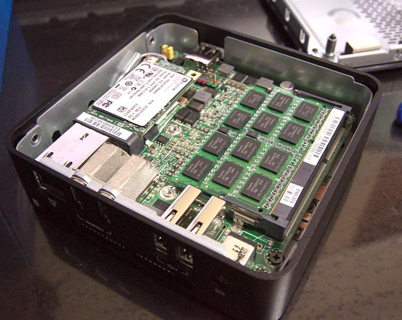 組み立てはとても簡単で、裏のネジを外して蓋を開け、メモリ、SSD、必要に応じて無線LANモジュールを入れるだけ。