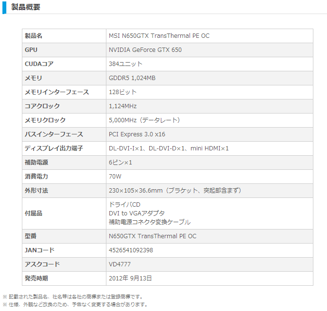 GTX650はミドルクラスだと思うので特に比較などはしません。