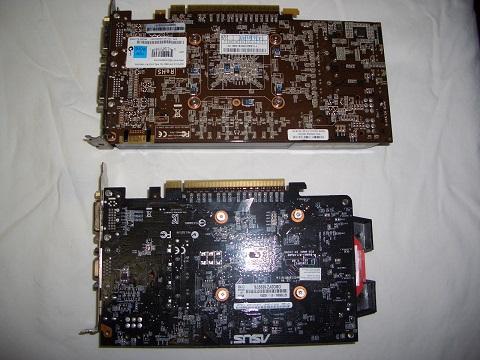 裏返しで見てみると基板の大きさが明らかに違う。GTX650の方がコンパクトに
