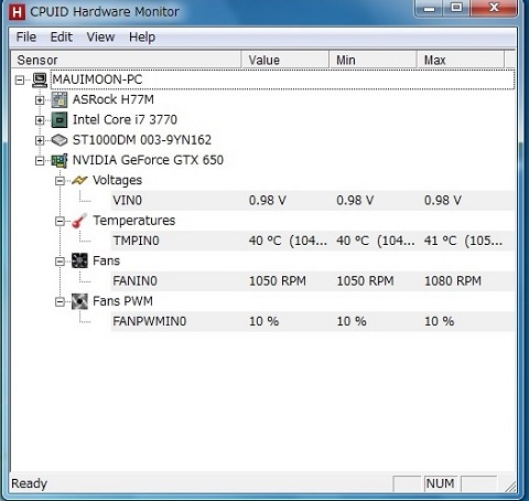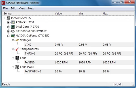 とりあえずアイドル時の温度測定をCPUID Hardware Monitorで測定してみた。