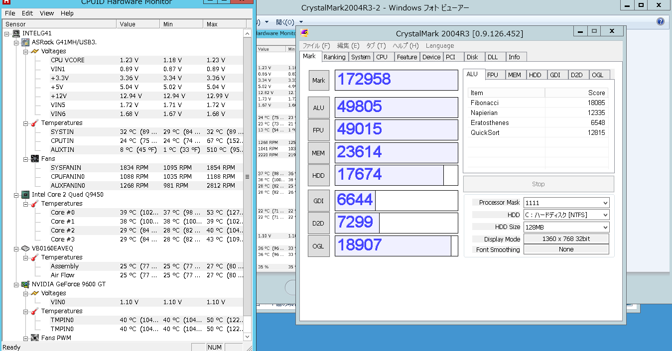 一世代前の中古でも4コア(Core 2 Quad Q9450)と2コア(E8500)のCPUとその他の