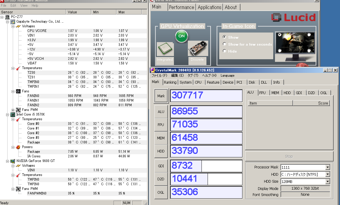 IVYのGIGABYTE GA-Z77MX-D3H、 Core i5 3570K とELSA GLADIAC 796 GT 512MB
