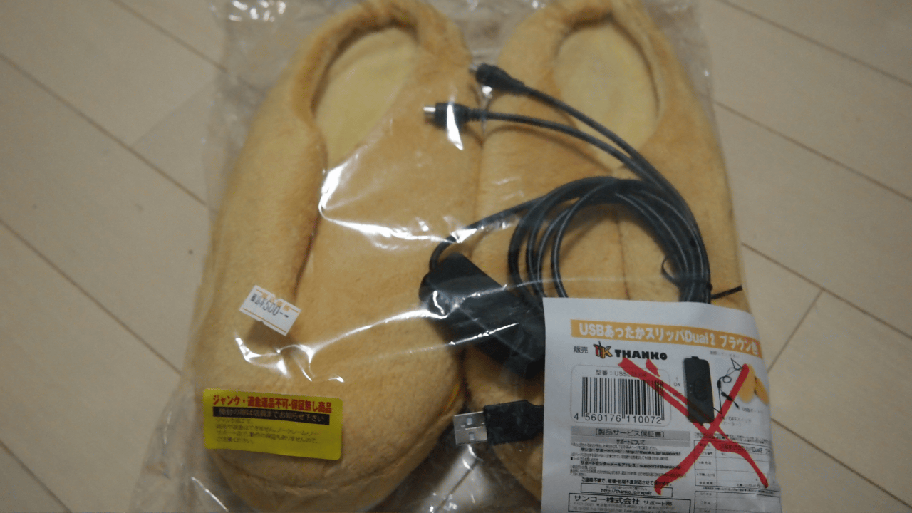 USBあったかスリッパ。さすがに今回は男性でも履けるサイズでした。