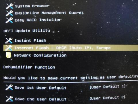 Tool機能を選択した後、”UEFI Update Utility”内の”Internet Flash - DHCP”を選択します。